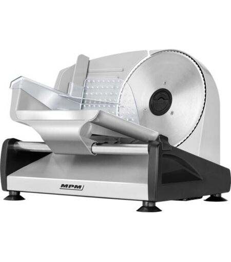 Affettatrice elettrica MPM MKR-04M 150W Affettatrice elettrica MPM MKR-04M 150W Questa affettatrice facile da usare offre uno spessore di taglio che va da 0 a 15 mm! La regolazione della velocità della lama a tre livelli consente di adattare il dispositivo al prodotto specifico. Consente di affettare salumi e formaggi in modo rapido ed efficiente, creando un pasto delizioso per i propri cari. Per la vostra sicurezza, il dispositivo è dotato di un pressa-prodotto che protegge le dita durante il taglio e di un blocco di sicurezza per evitare l'attivazione accidentale. Il disco di taglio è rimovibile, rendendo facile la pulizia del dispositivo. È inoltre possibile rimuovere l'alimentatore e le guide del pressa-prodotto per mantenerli impeccabilmente puliti. Specifiche Caratteristiche Tipo di affettatrice: Elettrico Colore del prodotto: Argento Spessore massimo: 1,5 cm Regolazione della velocità: Sì Piedini antiscivolo: Sì Potenza Potenza: Tensione di ingresso CA 150 W: 220 - 240 V ...
