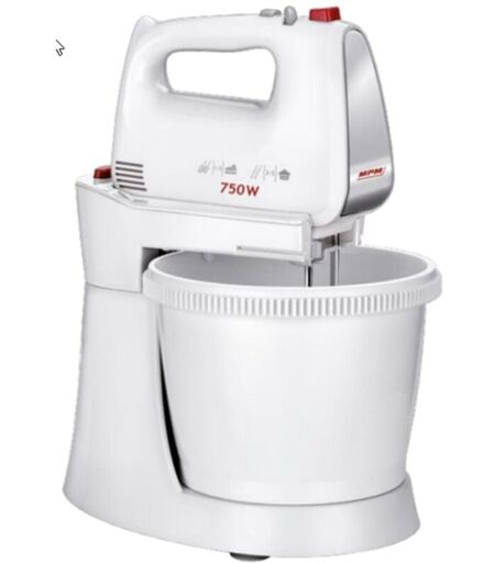 MPM MMR-20Z Impastatrice con ciotola rotante da 3 litri, senza bpa, 5 velocità + Turbo, frusta in acciaio inox e gancio per impastare, bianco, 750W -