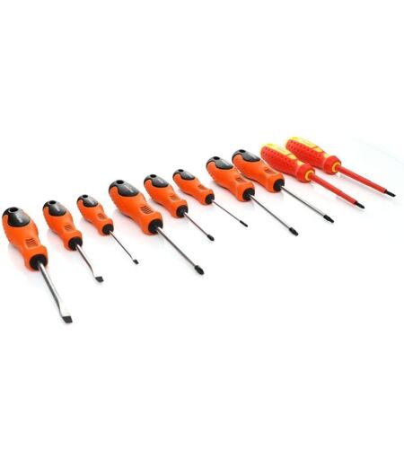 Il set di cacciaviti KD10901 di Kraft & Dele è un'utile aggiunta a qualsiasi garage o officina. Il set include due cacciaviti isolati da 1000 V (1 a testa piatta, 1 a croce). L'utilizzo di materiali di alta qualità nel processo di produzione prolunga la durata dei cacciaviti. Il set è composto da 10 pezzi. COMPOSIZIONE DEL SET: • 4 cacciaviti a testa piatta (3,0x75, 5,5x75, 4,0x75, 6,5x100mm) • 4 cacciaviti a croce (PH0x75, PH1x75, PH1x100, PH2x100mm) • 2 cacciaviti TORX (T15x100, T20x100mm) ...