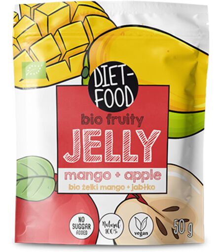 Caramelle gommose alla frutta – uno snack ideale a casa, in viaggio, in ufficio o a scuola. Le BIO Caramelle gommose alla frutta sono una novità dall'azienda Diet Food, che da tempo delizia con i suoi prodotti biologici e vegani. Le caramelle si distinguono per gli ingredienti semplici – contengono solo frutta da produzione biologica e pectina, utilizzata anche per la preparazione di marmellate. Le gommose alla frutta conquisteranno tutti coloro che cercano uno snack più equilibrato quando desiderano qualcosa di dolce. Sono adatte anche a persone che seguono una dieta vegana o vegetariana, e a coloro che cercano prodotti di qualità con ingredienti biologici Una gustosa combinazione di mela e mango – in delizose gommose. Le BIO Caramelle gommose alla frutta – mango, mela hanno numerosi vantaggi:: sono uno snack 100% vegano, non contengono zuccheri aggiunti, sono senza aromi artificiali, coloranti e conservanti, vengono pro dotte da frutta biologica al 100% (coltivata in frutteti biologici), hanno un basso valore energetico, sono un'ottima scelta anc he per i bambini. Adorabili gommose alla frutta che delizieranno anche i tuoi bambini. Le adorabili caramelle alla frutta sono adatte a tutti, anche ai tuoi bambini. Rappresentano un'ottima alternativa a normali caramelle gommose, poiché sono così buone che non noterai la differenza. Sono disponibili in una confezione pratica, che sarà sempre con te quando desideri qualcosa di dolce. ...