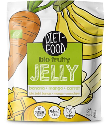 Caramelle gommose alla frutta – uno snack delizioso in viaggio, al lavoro o a scuola. Le BIO Caramelle gommose alla frutta sono una novità dall'azienda Diet Food, che da tempo delizia con i suoi prodotti biologici e vegani. Le caramelle si distinguono per gli ingredienti semplici – contengono solo frutta da produzione biologica e pectina, utilizzata anche per la preparazione di marmellate. Le gommose alla frutta conquisteranno tutti coloro che cercano uno snack più equilibrato quando desiderano qualcosa di dolce. Sono adatte anche a persone che seguono una dieta vegana o vegetariana, e a coloro che cercano prodotti di qualità con ingredienti biologici. Una gustosa combinazione di banana, mango e carota in deliziose caramelle. Le BIO Caramelle gommose alla frutta – banana, mango, carota hanno numerosi vantaggi: sono uno snack 100% vegano, non contengono zuccheri aggiunti, sono senza aromi artificiali, coloranti e conservanti, vengono prodotte da frutta biologica al 100% (coltivata in frutteti biologici), hanno un basso valore energetico, sono un'ottima scelta anche per i bambini. Caramelle di frutta che conquisteranno facilmente anche i tuoi bambini. Le adorabili caramelle alla frutta sono adatte a tutti, anche ai tuoi bambini. Rappresentano un'ottima alternativa a normali caramelle gommose, poiché sono così buone che non noterai la differenza. Sono disponibili in una confezione pratica, che sarà sempre con te quando desideri qualcosa di dolce. ...