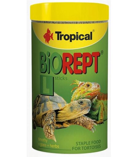 MANGIME DI BASE PER TUTTE LE TARTARUGHE TERRESTRI BIOREPT L è un mangime completo, ricco di ingredienti, in stick, per la somministrazione quotidiana a tartarughe terrestri allevate in terrari. Si caratterizza per l’elevata accettabilità ed è leggero e facilmente digeribile. BIOREPT L contiene una gamma ottimale di ingredienti nutritivi di base e integrativi, selezionata per soddisfare le esigenze nutrizionali delle tartarughe terrestri. SOMMINISTRAZIONE: 1-2 volte al giorno. Rimuovere il mangime non consumato dalla mangiatoia. ...