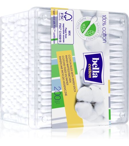 BELLA Cotton, 200 pz, Bastoncini cotonati unisex, La pulizia delle orecchie è una parte importante dell'igiene quotidiana. I bastoncini ovattati BELLA Cotton sono un accessorio che in bagno torna sempre utile. Sono utili sia per pulire le orecchie che per correggere il trucco. Caratteristiche: monouso pulisce le orecchie con delicatezza ed efficacia per l'igiene quotidiana si possono usare anche per correggere il trucco Composizione: 100% cotone ...