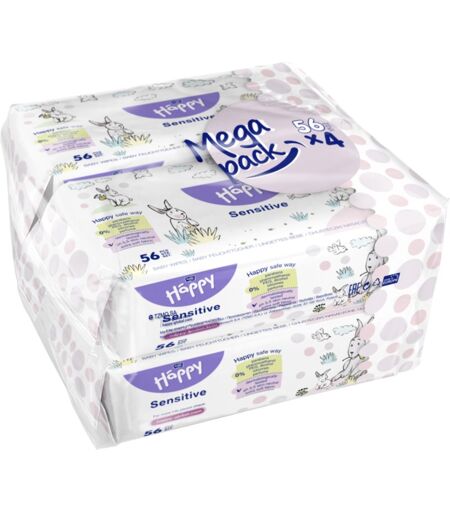 Bella Baby Happy Sensitive salviette detergenti umidificate per bambini 4x56 pz