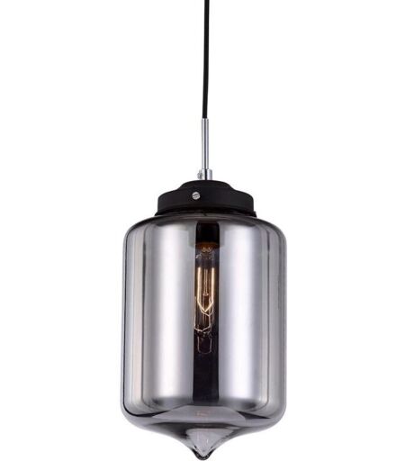 ITALUX Tube - Sospensione industriale e retrò nera a 1 luce con paralume in vetro scuro, E27 -
