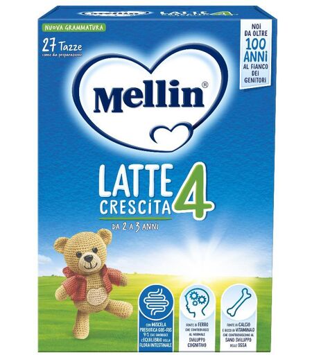 Mellin - LATTE CRESCITA 4 - Descrizione Formula per bambini nella prima infanzia (dal 12° mese) a base di latte scremato in polvere. La formula contiene la miscela prebiotica GOS - FOS 9:1 che favorisce l'equilibrio della flora intestinale. Fonte di ferro, che contribuisce al normale sviluppo cogni… ...