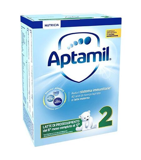 Aptamil 2 Polvere dal 6o mese compiuto al 12o. La formula giusta per iniziare lo svezzamento. Aptamil 2 e' un latte di proseguimento indicato a partire dal 6o mese compiuto per soddisfare le esigenze nutrizionali del lattante che cambiano con l'inizio dello svezzamento, periodo in cui l'alimentazione si diversifica e si completa settimana dopo settimana. Da oltre 40 anni, siamo pionieri nella ricerca sul latte materno, con la nostra appassionata squadra di 400 ricercatori, per capire come aiutare lo sviluppo del tuo bambino ed il suo sistema immunitario. L'unica formula con Pronutra+tm-ADVANCE, che combina la nostra esclusiva miscela di nutrienti ad un processo innovativo, da cui nasce questo latte di proseguimento. La formula e' arricchita dalle vitamine A, C e D che contribuiscono al normale funzionamento del sistema immunitario, olio di pesce e GOS/FOS. Aptamil 2 include ALA, per favorire il normale sviluppo cerebrale e del tessuto nervoso. Disponibile anche nel formato Liquido. Aptamil 2 deve essere utilizzato seguendo le indicazioni del Pediatra quando il latte materno manca o non e' sufficiente. Dopo Aptamil 2, a partire dal 12o mese compiuto, consulta il tuo Pediatra per proseguire la sua alimentazione lattea con Aptamil 3 Latte di Crescita. ...