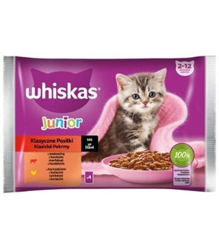 Whiskas Junior 2-12 mesi - Cibo umido per gattini, manzo e pollo