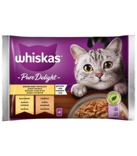 Whiskas Pure Delight - cibo umido per gatti adulti, pollo e tacchino, 4 x 85 g