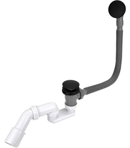 TYCNER Sifone per vasca con tappo click-clack e tubo di troppo pieno, nero