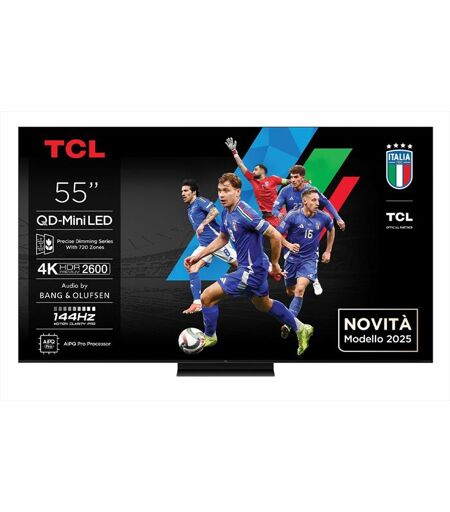 I TV TCL della serie C79K combinano la tecnologia QD-Mini LED, pannello QLED, risoluzione 4K HDR Premium, luminosità di picco 3000nit, e il Refresh Rate a 144Hz per una migliore qualità d'immagine in alta definizione. Inoltre, con il Game Master, l'HDMI 2.1, l'ALLM, il Refresh Rate a 144Hz, il FreeSync Premium Pro, la Game Bar, il Game Accelerator a 240Hz e la compatibilità con i diversi formati HDR (incluso HDR10+, DolbyVision e DolbyVision IQ) questo TV QD-Mini LED di TCL è il miglior compagno per godersi film, giochi, sport e intrattenimento in HDR. I TV TCL della serie C79K integrano anche il sistema di Smart TV più all'avanguardia: Google TV con Google Assistant. Accedi facilmente ai tuoi contenuti preferiti grazie al controllo vocale hands-free: puoi controllare il TV tramite la tua voce. Grazie al sistema audio di alta qualità firmato Bang & Olufsen, puoi goderti un'esperienza acustica immersiva Dolby Atmos sul tuo TV TCL oppure riprodurre l'audio dalla soundbar TCL. ...