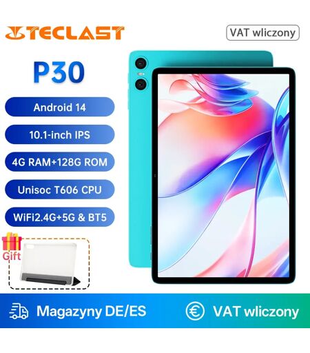 Teclast P30 Tablet PC Android 14 10.1 pollici 1280×800iPS Allwinner T606 8-core 4GB RAM 128G ROM 6000mAh Type-C WIFI6 2MP + 5MP Fotocamera
