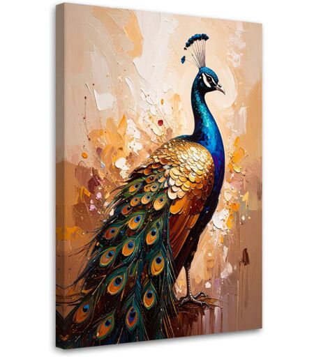 ARTGEIST - Quadro su tela, Pavone colorato Uccelli su sfondo beige - 60x90