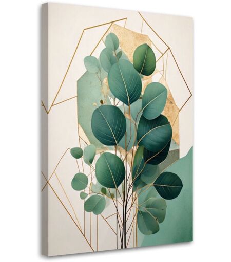 ARTGEIST - Quadro su tela, Foglie di eucalipto Geometrico Oro Verde Moderno - 40x60
