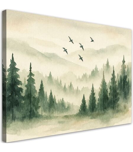 ARTGEIST - Quadro su tela, Foresta Montagne Uccelli Acquerello Verde Natura - 90x60