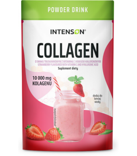 Collagene idrolizzato in polvere – per preparare una bevanda al gusto di fragola. Il collagene è una proteina strutturale che rappresenta il 30% di tutte le proteine nel corpo umano. È anche un componente importante della nostra pelle, muscoli, tessuti connettivi e cartilagine articolare. Il corpo può produrre il collagene da solo, ma dopo i 20 anni la sua produzione rallenta, quindi è utile iniziare ad aggiungerlo a una dieta varia ed equilibrata. Negli integratori alimentari si trova principalmente in forma idrolizzata, la quale è particolarmente efficace e che il corpo utilizza più facilmente. Collagene in forma idrolizzata con aggiunta di acido ialuronico e vitamina C. Per una maggiore efficacia e risultati più rapidi al collagene idrolizzato del marchio Intenson sono stati aggiunti anche: vitamina C o acido ascorbico, che contribuisce alla formazione del collagene per il normale funzionamento di vasi sanguigni, ossa, cartilagine, gengive, pelle e denti, e a cido ialuronico, naturalmente presente nella pelle e con un'eccezionale capacità di trattenere l'acqua – quindi fondamentale per idratare la pelle. Una gustosa bevanda alla fragola per una pelle dall'aspetto fresco. I vantaggi del prodotto Collagene idrolizzato – gusto fragola, 10,8 g: Alta dose di collagene e acido ialuronico, è arricchito con vitamina C, collagene nell'efficace forma idrolizzata, senza zucchero aggiunto, preparazione semplice, piacevole gusto di fragola. Il prodotto è un integratore alimentare con dolcificante. ...