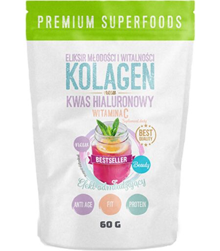 Collagene + Vitamina C + acido ialuronico – dose elevata di collagene e acido ialuronico. Collagene + Vitamina C + acido ialuronico è un integratore alimentare contenente un'alta dose di collagene e acido ialuronico, inoltre è arricchito con vitamina C. Il collagene è una proteina che rappresenta il 30% di tutte le proteine nel corpo e allo stesso tempo è una parte importante della pelle, dei muscoli, della cartilagine articolare e di tutti i tessuti connettivi. Il corpo produce da solo il collagene, ma dopo 20 anni la sua produzione rallenta. L'acido ialuronico è anche un componente naturale del corpo umano, che ha un'eccezionale capacità di trattenere l'acqua, lo troviamo nel liquido intorno al bulbo oculare, tessuto connettivo e nervoso, pelle e articolazioni. Nei tessuti può mantenere fino a 1000 volte la massa d'acqua in base al proprio peso. La vitamina C o l'acido ascorbico è una vitamina idrosolubile, che svolge un ruolo importante nello sviluppo del collagene per il normale funzionamento della pelle e partecipa a numerosi processi biologici ad es. nella protezione delle cellule dallo stress ossidativo. Benefici dell'uso del Collagene + vitamina C + acido ialuronico del marchio Intenson: alta dose di collagene e acido ialuronico, collagene in forma idrolizzata, arricchito con vitamina C, facile da usare, facile da digerire, prodotto altamente efficiente. Il prodotto è un integratore alimentare. ...