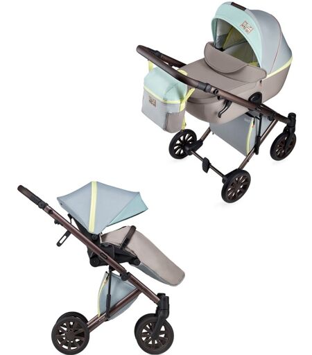 Duo Anex e/type Stile e comfort: Anex e/type e il passeggino di nuova generazione con dettagli in pelle ecologica che lo rendono ancora piu elegante. I punti forti di questo passeggino si basano sulla praticita per i genitori, sul comfort e sulla sicurezza per i bambini. Caratteristiche principali - Carrozzina capiente (dimensioni interne: 33 x 79 cm) - Regola la cappottina con una sola mano - Seduta con posizione studiata per i neonati - Poggiapiedi e maniglione regolabile - Si puo chiudere con la seduta - Sospensioni doppie sulle ruote - Ruote anteriori che girano a 360 gradi - Sistema di bloccaggio delle ruote anteriori premendo con il piede - Tessuti sfoderabili e lavabili - Tessuti idrorepellenti Peso e dimensioni Passeggino con carrozzina: 105 x 60 x 121 cm Passeggino con seduta: 105 x 60 x 115 cm Telaio chiuso (senza ruote): 73 x 50,5 x 27,5 cm Peso carrozzina: 5,2 kg Peso seduta: 4,6 kg Peso telaio (senza ruote): 5,65 kg Cosa e compreso Telaio, seduta passeggino, carrozzina con materasso, cappottine, telo pioggia, coprigambe per carrozzina/passeggino, cestello. ...