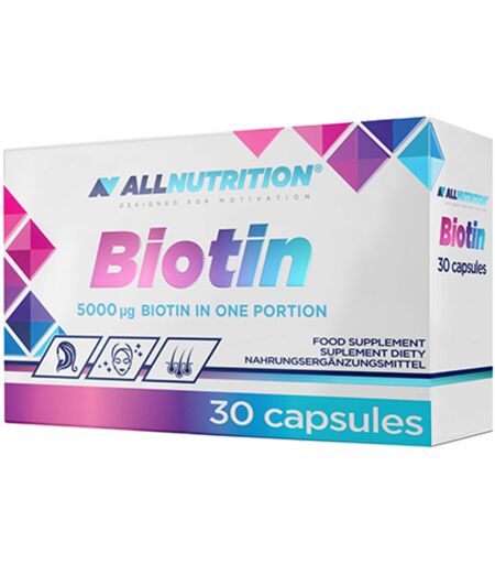 Capsule con biotina - il segreto della bellezza naturale dei capelli, pelle e unghie. La biotina o vitamina B7 è una delle vitamine del complesso B. È idrosolubile ed essenziale. È idrosolubile ed essenziale, il che significa che il nostro corpo non è in grado di produrla da solo, quindi è necessario assumerne una quantità sufficiente. È presente in varie forme, ma solo la d-biotina è la forma biologicamente attiva nel corpo umano. La fonte più importante di biotina è l'allimentazione, ma una parte è prodotta anche dal microbiota intestinale. È presente in quantità variabili negli alimenti, ma le fonti più ricche sono fegato, noci, farina d'avena, vari legumi, uova e anche funghi. La vitamina della bellezza che svolge un ruolo importante anche nel sistema nervoso. La biotina è spesso utilizzata negli integratori di bellezza perché aiuta a mantenere sane la pelle, i capelli e la mucose, oltre a contribuire a svolgere un ruolo importante: rilasciare energia per il metabolismo, funzione del sistema nervoso, metabolismo dei macronutrienti, il normale funzionamento psicologico. Una capsula (dose giornaliera raccomandata) contiene 5000 µg di biotina! Il prodotto è un integratore alimentare. ...