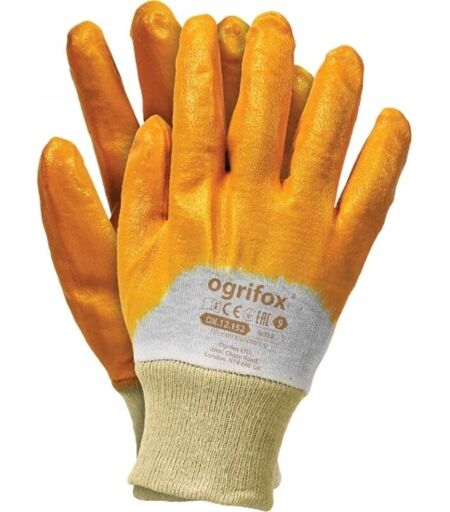 Guanti protettivi rivestiti in nitrile OX-NITER di OGRIFOX nei colori beige e arancione il polsino in maglia all'estremità del guanto garantisce comfort d'uso e impedisce al guanto di scivolare dalla mano il rivestimento in nitrile sulla parte di presa e su metà del dorso garantisce una maggiore resistenza a grassi, oli e idrocarburi perfetti per luoghi esposti al contatto con queste sostanze grazie alle loro proprietà, sono perfetti per officine meccaniche, trasporto e ricarica norme soddisfatte: EN420 Dati tecnici: OX-NITER BEP Taglia: 8 Colore: beige - arancione Prezzo per 1 paio di guanti ALTRE TAGLIE DISPONIBILI SU ALTRE ASTE! ...