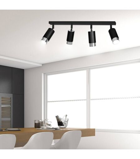 Lampada da soffitto HIRO 4 con faretti orientabili neri e dettagli cromati o dorati. Look moderno, perfetta per diversi ambienti interni. * Ideale per ambienti moderni * Struttura in acciaio * 4xGU10 non incluse - sostituibili * Interamente realizzato in Europa * Faretti orientabili La serie di faretti HIRO è il complemento perfetto sia per gli interni moderni che per quelli classici. Le lampade si distinguono per il design e la forma semplici, che si adattano perfettamente a qualsiasi ambiente. Luce concentrata e spot, ideale come illuminazione supplementare sopra il bancone della cucina, nel corridoio, in soggiorni e locali commerciali. La possibilità di regolare l'angolazione della luce aumenta ulteriormente la funzionalità della lampada. I tubi con elementi dorati o cromati costituiscono un ulteriore elemento decorativo davvero brillante. Inserisci la lampada GU10 all'interno di ogni faretto presente: SCEGLI LA TUA LAMPADA GU10 () ...