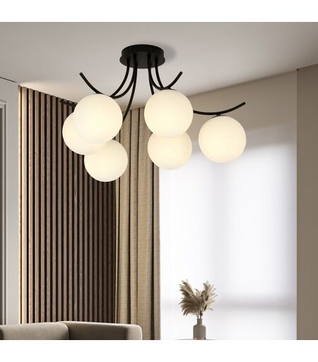 EMIBIG lighting Lampadario da Soffitto in Acciaio e Vetro BOSTON 6 Nero 6xE14