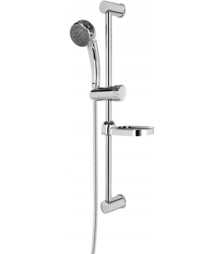 Set doccia DIAMOND CALABRIA PRODUTTORE POLACCO - PRODOTTO IN POLONIA Una linea classica di set doccia. Realizzati in plastica cromata, hanno forme e superfici facili da pulire. La lavorazione perfetta garantisce durata e qualità per molti anni a venire. I set sono dotati di una barra scorrevole, una maniglia con altezza regolabile e un tubo flessibile intrecciato. I set doccia possono essere collegati a qualsiasi rubinetto doccia DIAMOND. Il set è composto da: Asta scorrevole e supporto con altezza regolabile del manico della doccia Doccia manuale a cinque funzioni Tubo flessibile intrecciato Portasapone Specifiche tecniche: Materiale: plastica di alta qualità con rivestimento cromato Classe di flusso: A Temperature di esercizio consigliate: ≤ 42°C (consentito ≤ 70°C) Pressione di esercizio consigliata: da 1 a 3 bar (consentito da 0,5 a 5 bar) Filettature di collegamento: G 1/2 Caratteristiche del prodotto: Prodotto dotato di sistema di risparmio idrico Classificazione del prodotto in ...