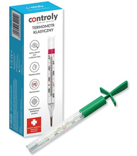 Termometro classico senza mercurio in grado di misurare la temperatura corporea in modo preciso. Il termometro analogico CLASSICO ha un puntale rigido, e all'interno del dispositivo si trovano la scala termometrica e il liquido termometrico. Il composto fluido non contiene mercurio, in quanto si tratta di una lega liquida di gallio, indio, stagno e zinco, nota come galinstano. Questo liquido è eco-friendly e non nocivo per la salute, il che ti permette di stare tranquillo in caso il termometro dovesse danneggiarsi. La temperatura può essere misurata per via ascellare, orale o rettale. Vantaggi del termometro classico: assicura una misurazione estremamente precisa con una tolleranza minima di ± 0,1 ° C, campo di misura che va da 35,5 °C a 42,0 °C, termometro analogico, senza batterie, tempo di misurazione: 8 minuti, è impermeabile, possiede la marcatura CE. Dotato di astuccio con lente di ingrandimento per agevolare la lettura dei dati e con una confezione speciale per facilitare l'abbassamento della temperatura del termometro. Il prodotto è conforme alla Direttiva CEE 93/42:1993 sui dispositivi medici e agli Standard europei EN 12470-1:2000 e A1:2009 (Termometri clinici - Parte 1: Termometri a dilatazione di liquido metallico in vetro). Il termometro senza mercurio è regolamentato a livello internazionale con il brevetto EP 0 657 023 B1. ...
