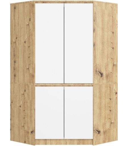 AKORD Armadio ad angolo S100 Quercia Artisan 100 cm 4 ante inserto frontale Bianco 100x50x180 cm