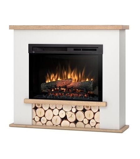 OUTINFIRE Tula - Caminetto Elettrico a Libera Installazione a led - 26' - Bianco opaco / Rovere chiaro - 100 x 88 x 28