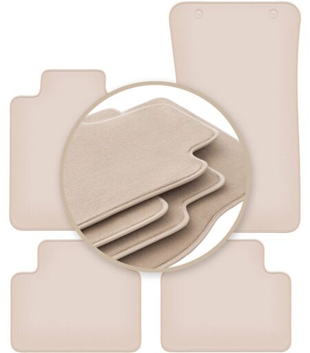 Tappeti grandi DURBAN: eleganza e funzionalità in beige! I tappeti della serie DURBAN in beige rappresentano la combinazione perfetta tra lusso e praticità. Lo strato superiore è realizzato in pelo tagliato (100% poliammide), il che lo rende esteticamente molto gradevole, mentre la gomma piena inferiore protegge efficacemente il pavimento dell'auto da umidità e sporco. La vestibilità precisa di ogni elemento garantisce la stabilità dei tappetini durante la guida, conferendo al contempo un tocco di eleganza agli interni del veicolo. I bordini in ecopelle beige rinforzano i bordi e sottolineano il design moderno, adattandosi a vari tipi di interni di auto. ...