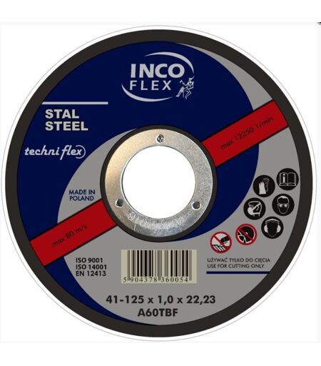 Dati tecnici: Forma: piatta TIPO 41 Diametro esterno: 230 mm Diametro foro: 22,2 mm Spessore: 2,5 mm Velocità di rotazione massima: 6650 giri/min I dischi sono conformi allo standard: EN-12413 Il prezzo è per: 1 pz. Applicazione: rettifica di acciai ordinari taglio di acciaio con sezioni trasversali grandi ** La foto è solo a scopo illustrativo. ...