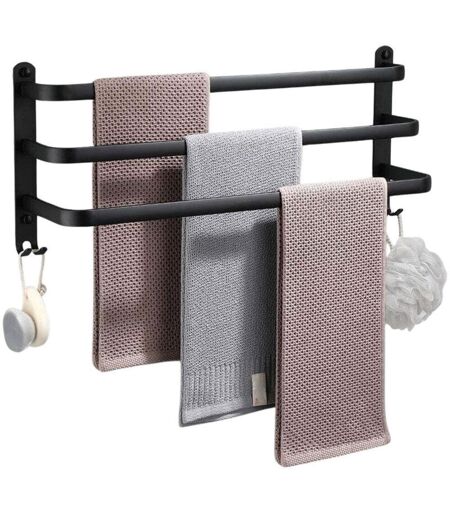 AWELCO Porta asciugamani con 3 sezioni e 4 ganci nero