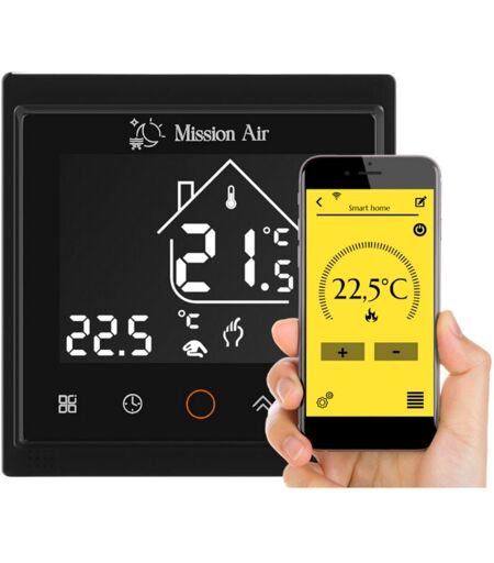 Termoregolatore con funzione di programmazioneMission Air "LIBRA BLACK"WiFi + Amazon Alexa e assistente vocale Google HomeIl termoregolatore programmabile Mission Air è un dispositivo moderno con possibilità di controllo remoto tramite WiFi utilizzando un telefono o tablet con Android o iOS. È dotato di display LCD e pannello di controllo touch. Il regolatore è dotato di un sensore di temperatura ambiente integrato ed è inoltre dotato di serie di un sensore di temperatura del pavimento NTC cablato. Colore: neroIn altre offerte abbiamo il modello Libra bianco. Moderno termoregolatore Termoregolatore intelligente della serie LIBRA con funzione di programmazione settimanale, che consente di impostare fino a sei periodi del programma di riscaldamento. Supporta anche funzioni di controllo manuale e temporaneo. Una comoda funzione di controllo remoto, un funzionamento semplice, efficienza energetica e rispetto per l'ambiente: tutte queste caratteristiche lo rendono una soluzione ideale per ...