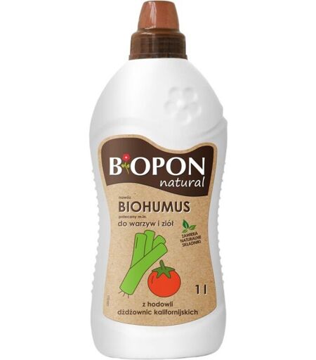 Dati tecnici: Confezione unitaria: 1 l BIOPON BIOHUMUS NATURALE PER ORTAGGI ED ERBE AROMATICHE Fertilizzante organo-minerale liquido multicomponente , ottenuto dal prodotto dei lombrichi californiani. La presenza di humus biologico migliora le proprietà del terreno e garantisce una corretta nutrizione delle piante. Il contenuto aggiuntivo di componenti minerali adeguatamente bilanciati garantisce una crescita intensiva e un corretto sviluppo delle piante . ** ...