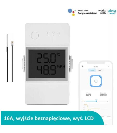 Termostato Sonoff 16A Wi-Fi con display LCD e sensore impermeabile