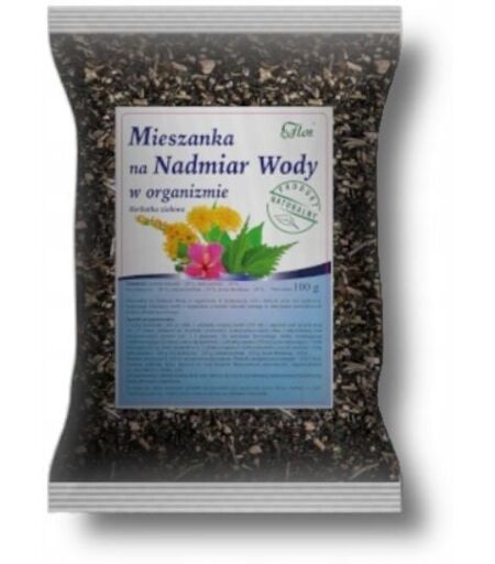 Miscela per l'acqua in eccesso nel corpo 100 g Ingredienti: radice di tarassaco – 20%, erba di verga d'oro – 20%, foglia di ortica – 20%, tè verde – 20%, fiore di ibisco – 20%. Istruzioni per l'uso: Indicato sulla confezione. Nota: prima di ogni utilizzo, mescolare molto accuratamente il prodotto! Controindicazioni : Il prodotto non deve essere utilizzato da bambini, donne in gravidanza o in allattamento o persone allergiche agli ingredienti della miscela. Il prodotto è un alimento e in caso di qualsiasi malattia epatica, consultare un medico prima di consumare la miscela. Condizioni di conservazione: Conservare in un luogo asciutto, al riparo dalla luce. ...