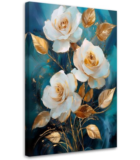 ARTGEIST - Quadro su tela, Fiori rosa bianchi e oro su sfondo blu - 80x120