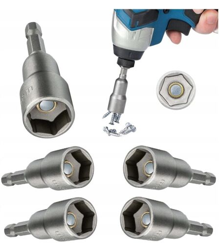 Set di 5 bussole magnetiche Farmer da 10 mm per cacciaviti esagonali
