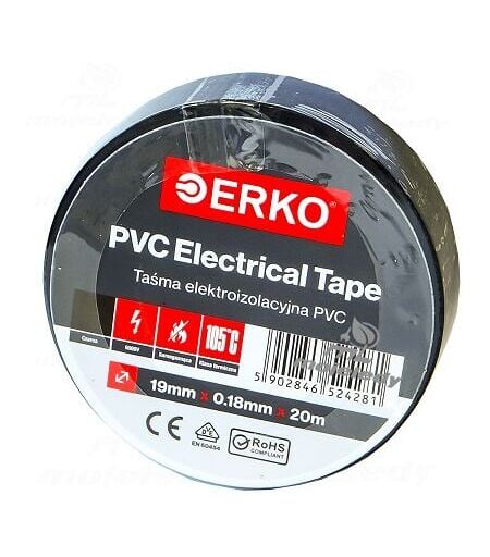 ERKO Nastro Isolante elettrico nero 19 mm x 20 m 8 Pezzi pvc Per isolare, Riparare e legare, nastro adesivo, Per tensioni fino a 6 kv, elettrici