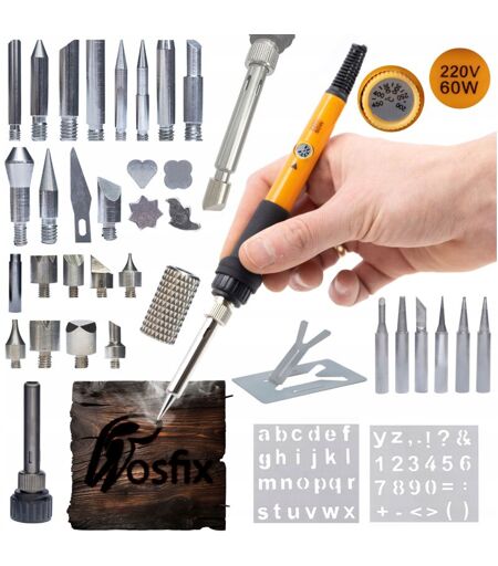 Rosfix Set 8in1 Saldatore di precisione con potenziometro Rosfix Orange Pitbull OP60W Serie Elettrico S+30 elementi per legna