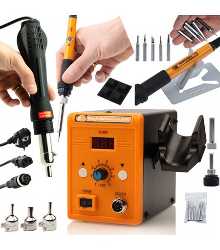 Stazione saldante ad aria calda Rosfix Rosfix 858D + Set saldatore di precisione 8in1 con potenziometro Rosfix Orange Pitbull OP60W Electric S Series