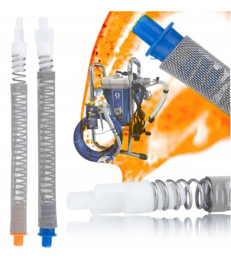 Filtro a dita Rosfix FTX 100 mesh, rosso per unità di verniciatura Graco / Airlessco + Filtro a dita FTX 50 mesh, blu per unità di verniciatura