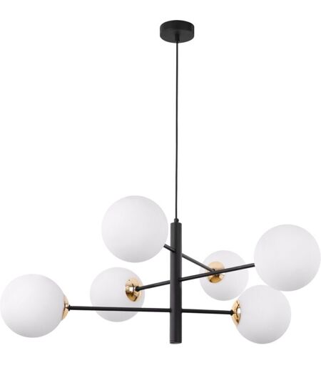 Lampada A Sospensione Vicenza Nero E Oro 6 Paralume Bianco Piatto E14