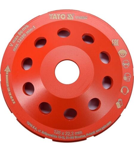 Descrizione del prodotto Mole a tazza progettate per l'uso con smerigliatrice angolare. Sono utilizzate per livellare superfici in calcestruzzo prima della posa delle piastrelle e per rimuovere il calcestruzzo in eccesso che sporge oltre il piano di pareti e pali in calcestruzzo. Prodotte con tecnologia di sinterizzazione a caldo, che garantisce un rapido avanzamento del lavoro e una lunga durata delle mole. La granulazione diamantata nei segmenti consente la lavorazione di calcestruzzo, pietra naturale e silicati. foro di montaggio del disco: M14 costruzione: segmenti sinterizzati a caldo a fila singola altezza del segmento: 8 mm adatto per lavorare con smerigliatrici angolari e levigatrici per calcestruzzo Dati tecnici Numero indice YT-60322 EAN 5906083048142 Diametro esterno [mm] 125 Diametro interno [mm] 22.2 Velocità di rotazione massima [RPM] 12200 Altezza segmento [mm] 8 Applicazione Calcestruzzo, pietra ...
