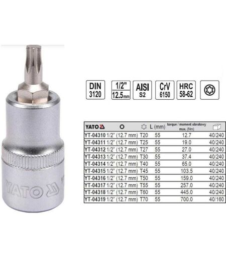 YATO CHIAVE TORX 1/2"" T30x 55mm