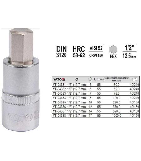 YATO Chiave esagonale 1/2'' 17MM L55MM YT-04388