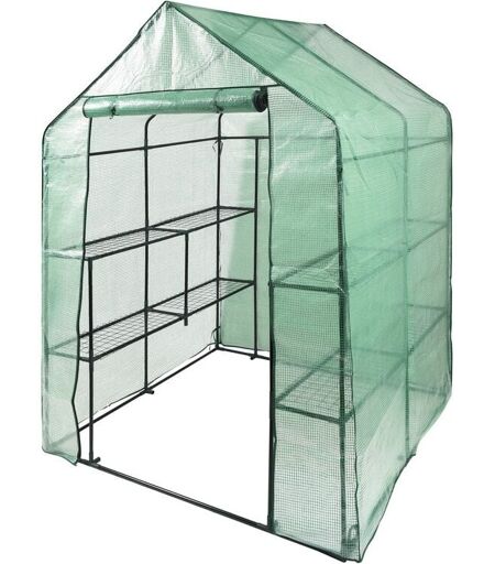 Dati tecnici: altezza: 195 cm larghezza: 143 cm profondità: 143 cm altezza parete laterale: 155 cm altezza colmo: 195 cm superficie: circa 2 m2 profondità ripiano per piante in crescita: circa 30 cm altezza tra i ripiani circa 40 cm numero di ripiani: 8 pezzi ingresso con cerniera 160 cm x 68 cm pellicola: PE trasparente/verde 135 gr/m2 telaio: profilo in acciaio verniciato a polvere fi 16 mm, connettori in plastica Nota: La serra deve essere adattata alle condizioni meteorologiche prevalenti in una data posizione e opportunamente ancorata al terreno. Pratica serra domestica per la coltivazione di ortaggi, frutta, erbe aromatiche e fiori. Facilissima da montare, struttura stabile. La serra crea un microclima ideale che consente di prolungare la stagione di crescita. Protegge le piante da agenti atmosferici come grandine, pioggia, vento e gelo. ** ...