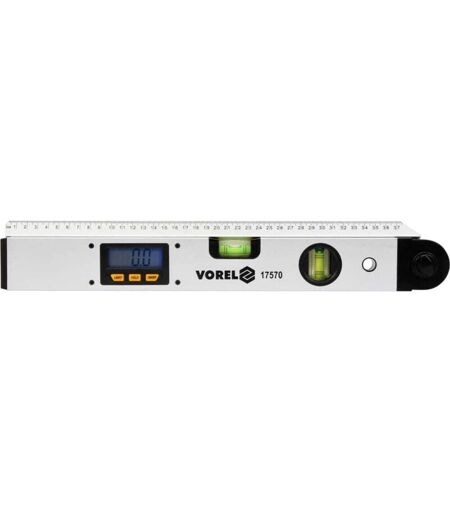 Questo goniometro elettronico è progettato per determinare con precisione gli angoli entro un intervallo di misura da 0° a 230°, con scala di 0,1°. Il corpo è realizzato in un profilo di alluminio e funziona come una livella a bolla dotata di due fiale. Consente di determinare con precisione linee di 180° o 90°. Il braccio mobile lungo 400 mm ha una scala millimetrica contrassegnata in modo permanente sul bordo. I risultati delle misurazioni vengono letti su un ampio schermo LCD retroilluminato. La funzione Hold, per bloccare temporaneamente il risultato della misurazione, e la funzione di spegnimento automatico, che protegge la batteria da 9 V, aumentano l'utilità del goniometro. EAN: 5906083007828 ...
