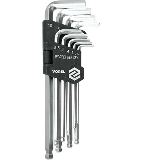 VOREL CHIAVI ESAGONALI / ESAGONALI / 2,5-10 mm, set da 9 pezzi. PUNTE A SFERA 56475